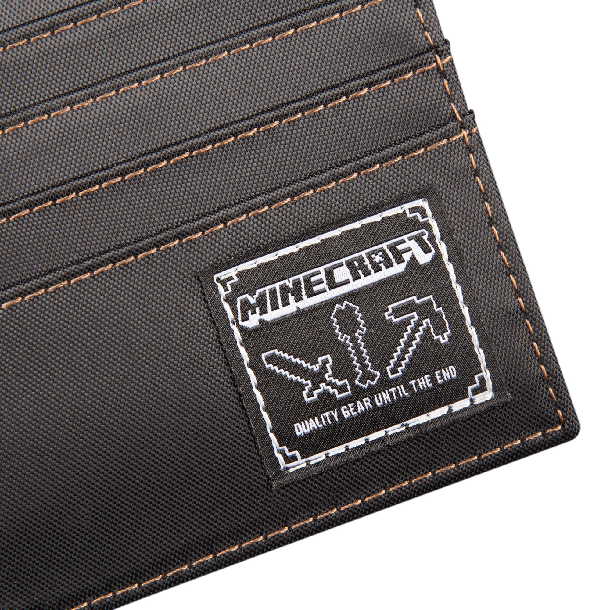 - Dirt Block pattern from Minecraft video game wrap-around print on outside; black interior with Minecraft woven label