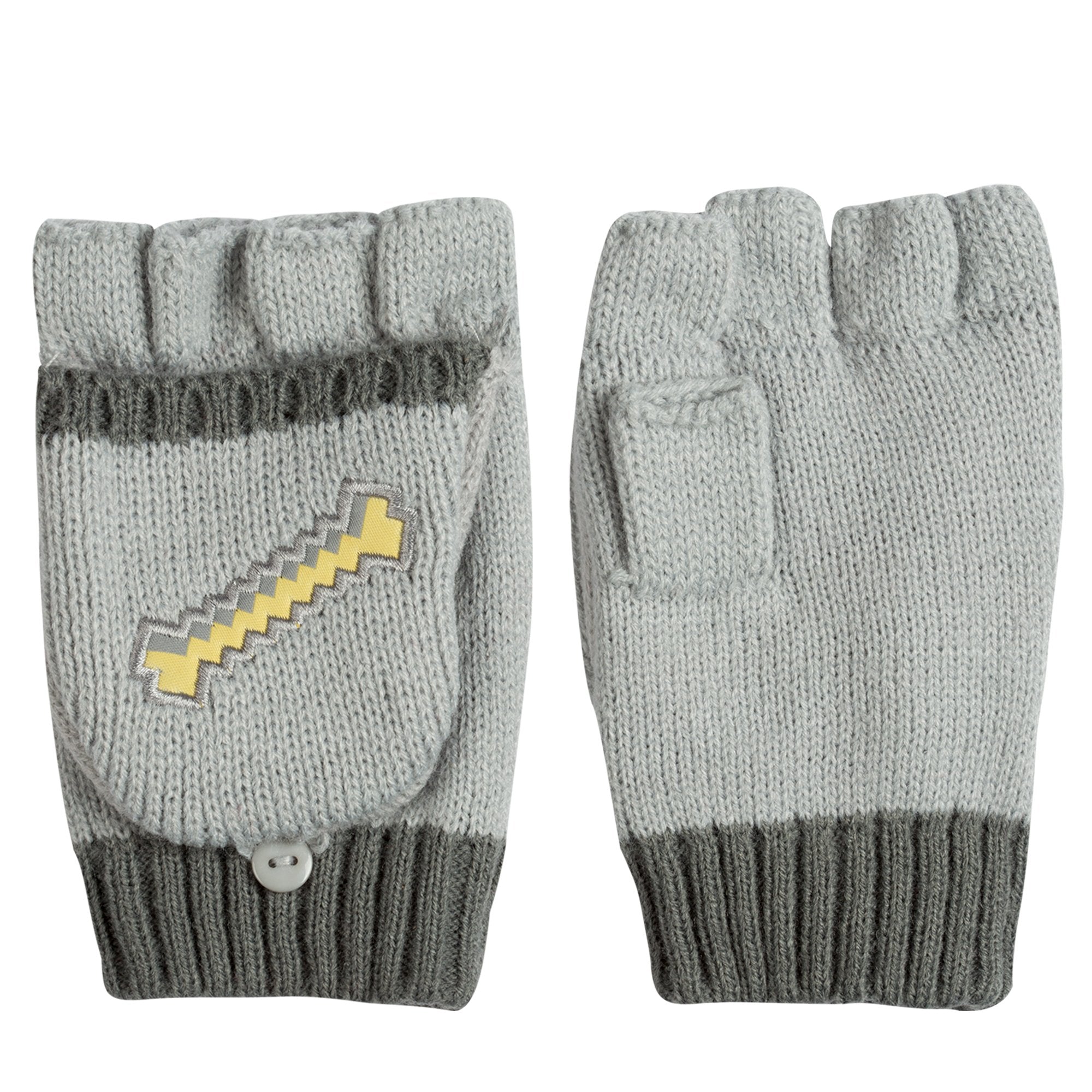 • Grey Wolf-inspired fingerless gloves with convertible mitten flap cover, with button
